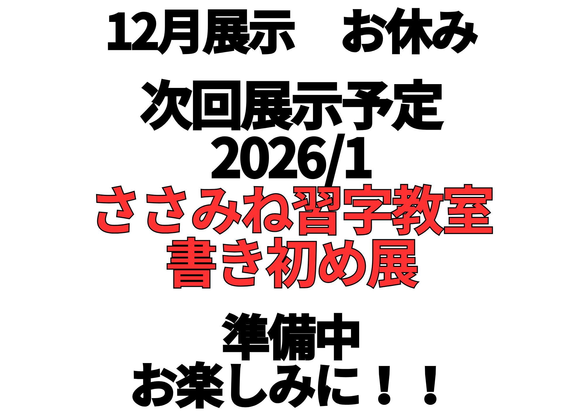 来年1月の展示【ささみね習字教室 書き初め展】にむけて準備中です。