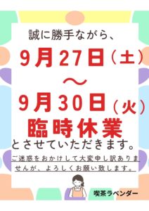 【重要】喫茶ラベンダー・ごはん亭より、臨時休業のお知らせ ※27日追記有り