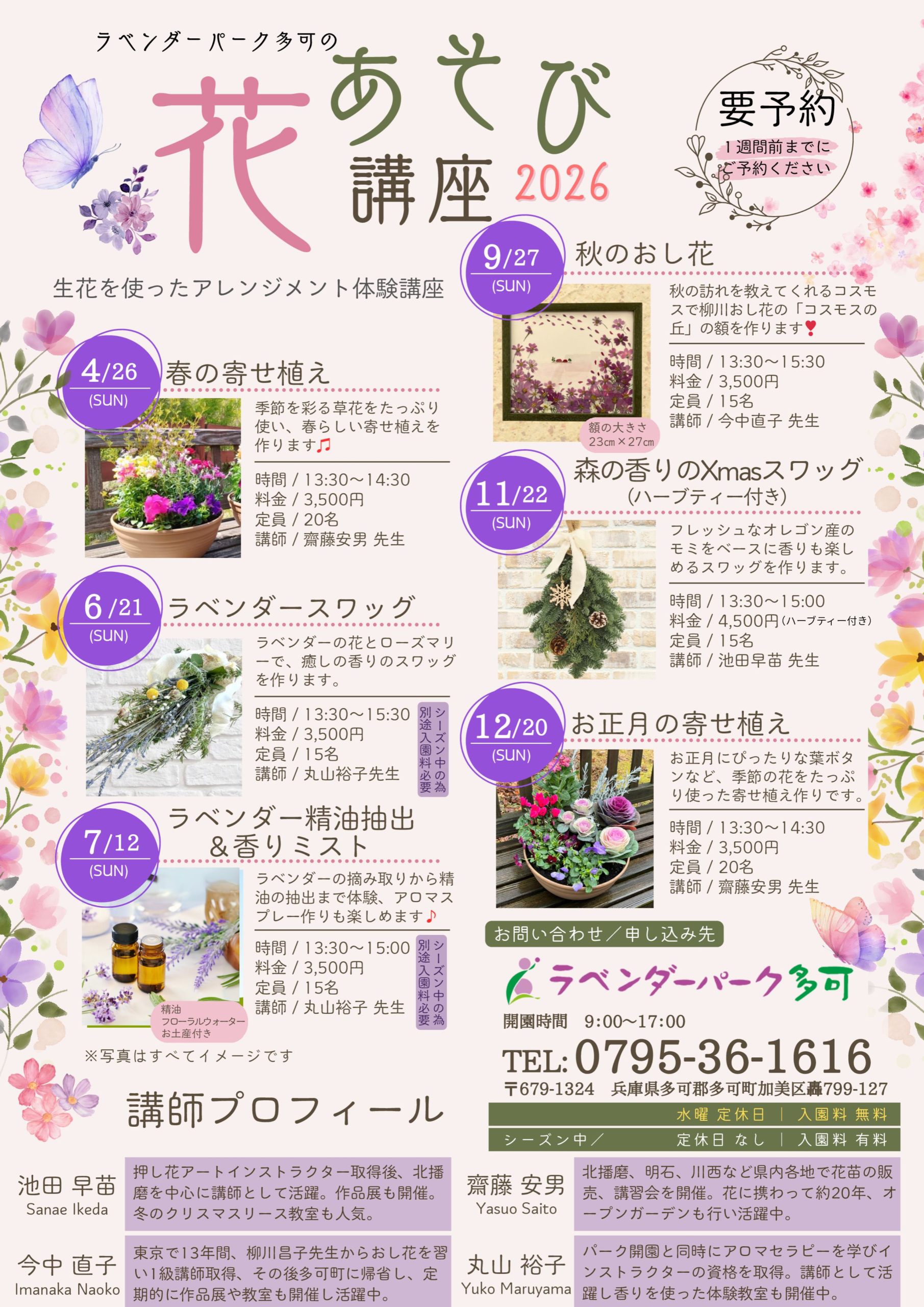 ※体験教室はすべて予約が必要ですので、お電話又はメールにて1週間前までにお申込みください。